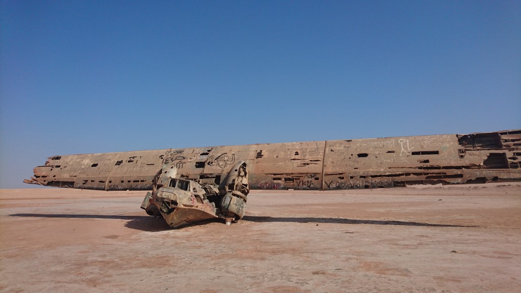 استيقظت من قيلولة الظهر صبيحة اليوم الوطني الفائت على مقعد الراكب في سيارة تقطع “رأس الشيخ حميد” ، ذاك اللسان البري غرب تبوك و الذي يمتد داخل خليج العقبة حتى يكاد يلامس جزيرة تيران. بعد دقائق من الصمت أعلن أسامة من مقعده أن دوره في الراحة حان. كنا نستغل العطلة لقطع الطريق حول معالم تبوك ، و بطبيعة ضيق الوقت تبادلنا القيادة و الراحة. لا توجد الكثير من الشوارع على “رأس الشيخ حميد” ، هو طريق واحد يقطعه إلى نهايته ثم يتفرع ليتجه شمالاً نحو قرية مقنا ، و لذا ما إن قاربنا نهاية الخط لم يضنني البحث لألمح هدفنا على الشط المقابل. و رغم اختلاط ألوانه بألوان الرمال و تموجات السراب ، لا يزال هيكل ما تبقى من طائرة رأس الشيخ حميد “الغامضة” واضحاً للعين المجردة ، و لم يستغرق الأمر إلا دقائق لنكون عند جثمانها.