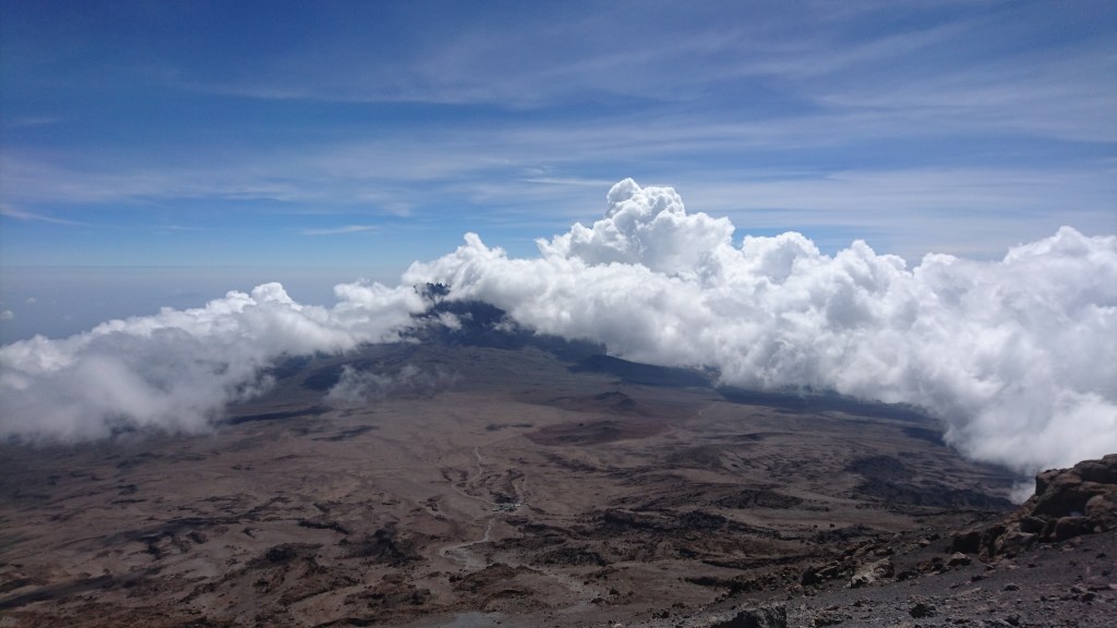 ما أن تتخطى حاجز منتصف كليمنجارو تلاحظ أن له أكثر من قمة. لتبسيط الأمر ، تصور أن قمة كليمنجارو سهل منبسط فوقه ثلاث جبال أخرى ، هي “كيبو” و “ماونزي” و “شيرا”. و المسافة بين هذه القمم الثلاثة صحراء يبلغ قطرها حوالي الخمس عشر كليومتراً ، تذكر أن مساحة كليمنجارو ذاته تضاهي الأربعين كيلومتراً و لذا فالمسافات فيه – حتى قرب القمة – توزع بسخاء يفوق خلفاء قصص العرب و صررهم الذهبية التي يرشق بها شعراء البلاط.