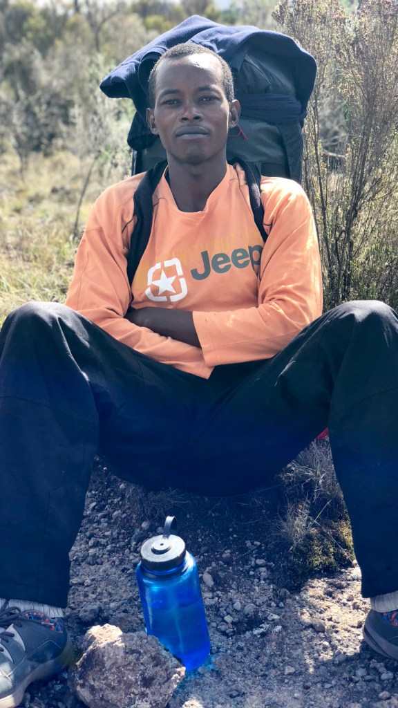 دليلنا رجب شاب في أوائل الثلاثين من عمره ، أسمر البشرة ، يكنى بأبي شريم بعد أن سمى ابنه تيمناً بالشيخ ، و يصر على أنني “فتى أبيض” بإصرار لا أرى فيه إلا محاولة متعمدة للإهانة. و لكن طيبة قلبه وذرابة لسانه تكفيان لإقناعي بتجاهل هذا السباب الصريح و عدم الشجار معه ، أو لعل غريزة البقاء هي ما يردني عن العبث معه. يعمل رجب كدليل يقود الناس إلى جبل قمة كليمنجارو منذ نعومة أضافره ، و هي نعومة فقدها لظروف وظيفته منذ زمن بعيد حتى صار قادراً على حك يديه ببعضها لإشعال النار. و أجزم أن زوجته تحد سكاكين المطبخ على راحة يده. تسلق الجبل مائة و ستة و ثلاثين مرة بالتمام ، و بما أن كل رحلة إلى قمة أوهورو تستغرق حوالي الأسبوع يكون رجب أمضى ما يقارب الثلاث سنين من عمره على أراضي الجبل. و خلال هذه السنين حمل ما يقارب الخمسة أطنان من و إلى الجبل ، بين خيام و طعام و أمتعة و سائح أو اثنان بعد أن عجزت أقدامهم عن حملهم. أعلمت الآن لما حرمت علي غريزة البقاء الاقتراب منه؟