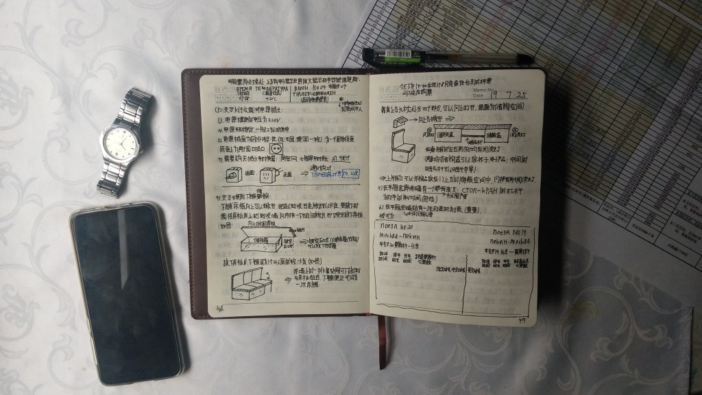 عنون رن دفتره بـ”الدليل” ، و هو نسخة القطارات من دليل أشبال الكشافة الذي أثبت أبناء عم بطوط في قصصه المصورة أنه يتضمن خلاصة العلوم البشرية (أو البطية) كلها بغض النظر عن غرابة المواضيع و دقة المعلومة. استفتح رن دليله بخطوات مفصلة عن كيفية شراء تذكرة القطار و التقديم على التأشيرة الروسية ، موردًا عدة خطط بديلة في حال رفضت التأشيرة أو نفذت التذاكر ، ثم عرج على القطار نفسه و اختتمه بالحديث عن موسكو ذاتها. تضمن الدليل رسومًا تفصيلية لشكل القطار الخارجي و تفصيل الغرفة من الداخل بكل أدراجها السرية و عدد المقابس في كل مقطورة مع خطة للإخلاء في حالة الطوارئ. ملحق الدليل الأول قائمة مطولة لكل يوان صرفه في سبيل هذه الرحلة ابتداءً بسعر الصورة الشخصية التي التقطها لأجل التأشيرة و حتى سعر الاستحمام هذا الصباح. أما الملحق الثاني فجدول مطول لجميع المحطات التي سيمر بها القطار مع وقت الوصول و المغادرة بتوقيت موسكو و توقيت الصين الموحد و توقيت المحطة المحلي ، و قد أثبت هذا الجدول تفوقه على جدول القطار الرسمي في أكثر من موضع. بل و أورد رن في طياته رسمًا توضيحيًا لشكل فندقه في موسكو. كان في الدليل جواب مفصل على كل سؤال متعلق بالقطارات طرحته على رن ، عادة برسوم توضيحية و مراجع داعمة ، سواء كان السؤال عن سرعة القطار أو عمره أو عدد المقطورات فيه أو أي شيء أخر. دليل رن عمل موسوعي حق أن يخلد في تاريخ عائلته و تاريخ القطار ، و قد كرس رن جزءاً من كل يوم لمراجعة الدليل و الإضافة عليه. لبقية الرحلة ، و مهما توقعت أن دفتر رن قد أظهر كل ما فيه و غدى عاجزًا عن إدهاشي ، قلب رن صفحة جديدة فيه تثبت خطأي.